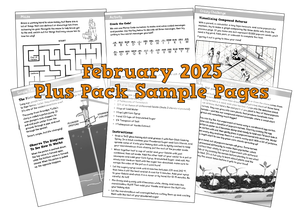 The Plus Pack recently received a BIG upgrade: more activities, games, projects, discussions, contests, and worksheets—now including additional subjects relevant to each month’s theme. What we’re really doing is transforming the Plus Pack into a true unit study workbook, giving your kids hours of well-rounded, educational fun each month.