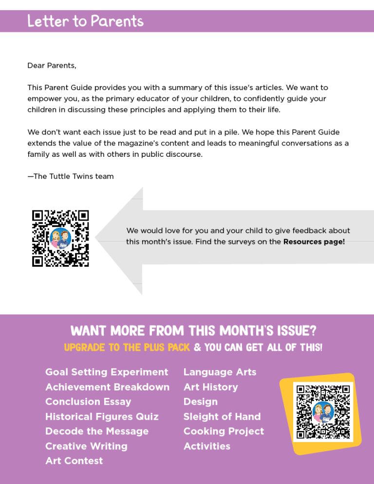 The Parent Guide is available to ALL Tuttle Times subscribers. Be sure to download the PDF to find: